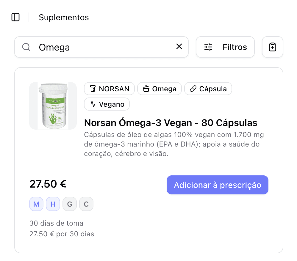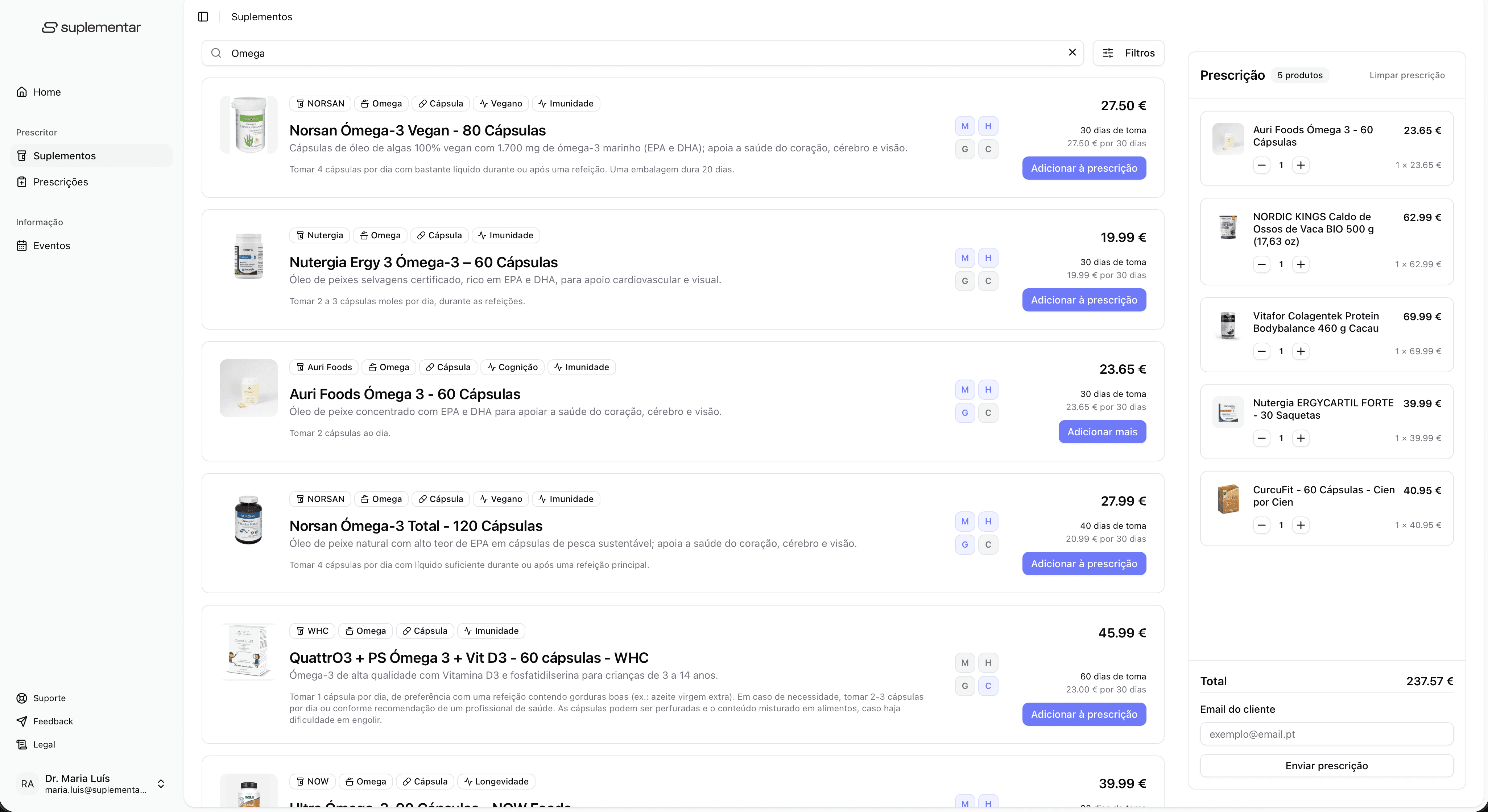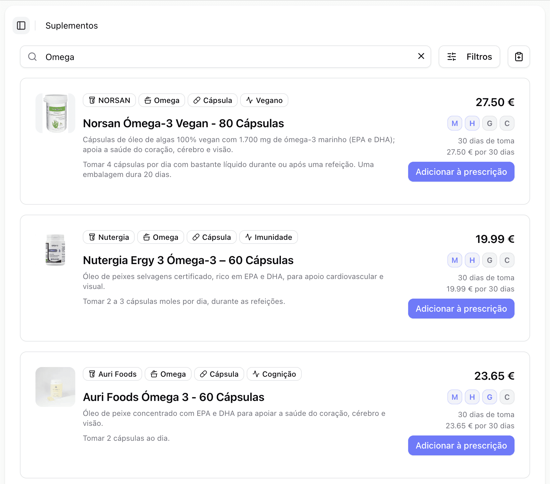 Prescrever suplementos alimentares de forma fácil, informada e transparente.